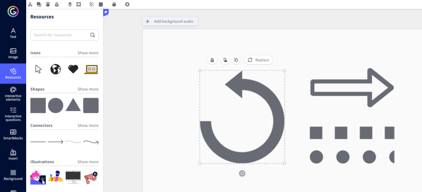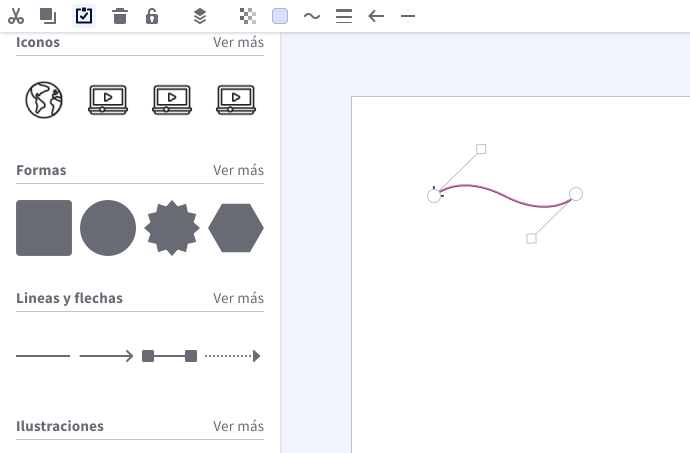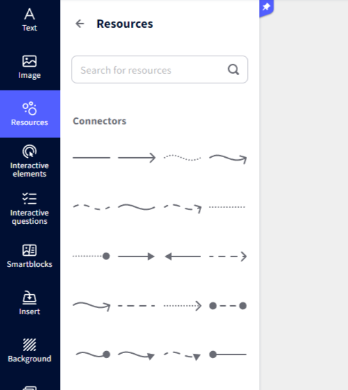 In the Genially editor there are many graphical resources, one of the most used are lines and arrows, these work as basic shapes, meaning that you can only edit position, size and colour. - Lines and arrows are mostly used to point, link and connect elements, but these actions are very difficult and tedious to achieve with a simple graphic. Therefore, one of the most important user requirements is to have lines and arrows to reduce the time and effort required to create presentations.