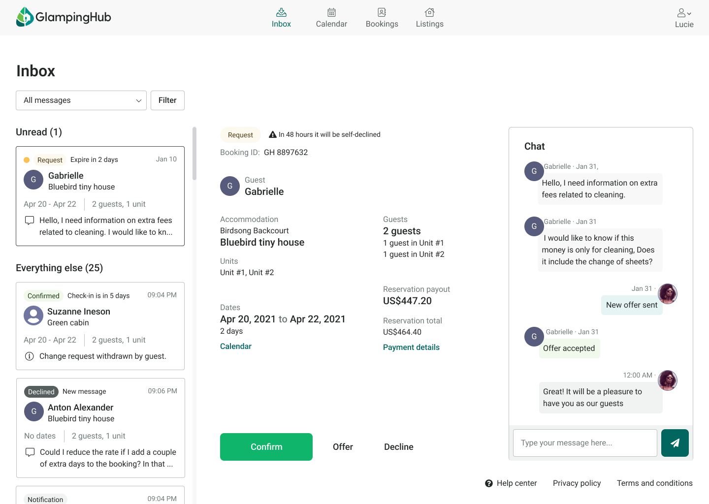 In Glamping Hub there are two dashboards, Host and Guest, they communicate with each other but technically they are independent, they both influence the user's journey.